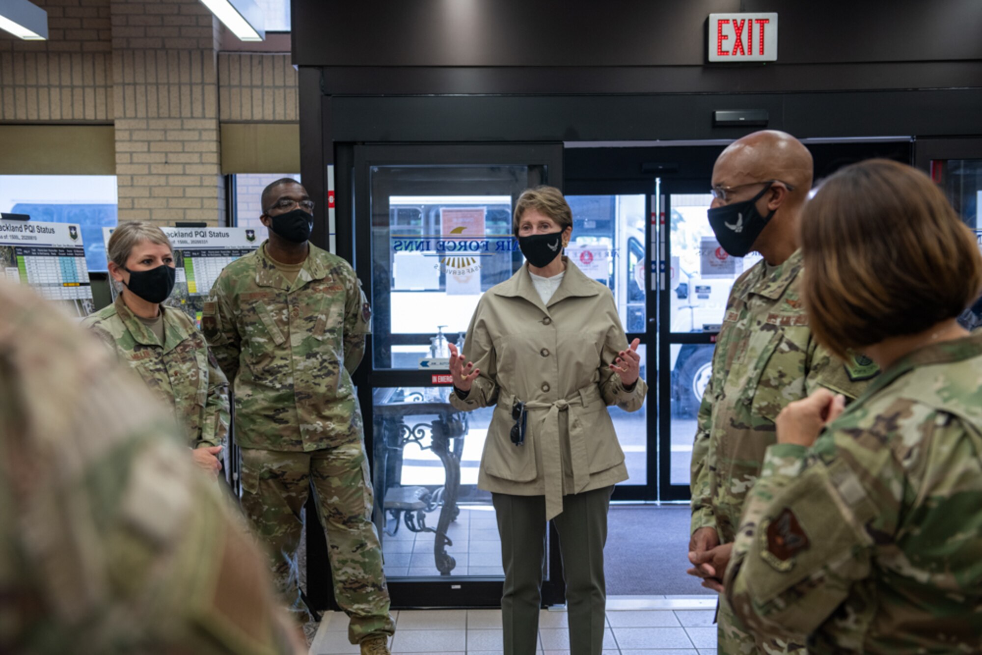 The tour included visits to the 12th Flying Training Wing at JBSA-Randolph and the 37th Training Wing, 59th Medical Wing and 502nd Air Base Wing units at JBSA-Lackland to highlight how members at both locations are finding innovative solutions to continue to successfully execute the training mission during a global pandemic.